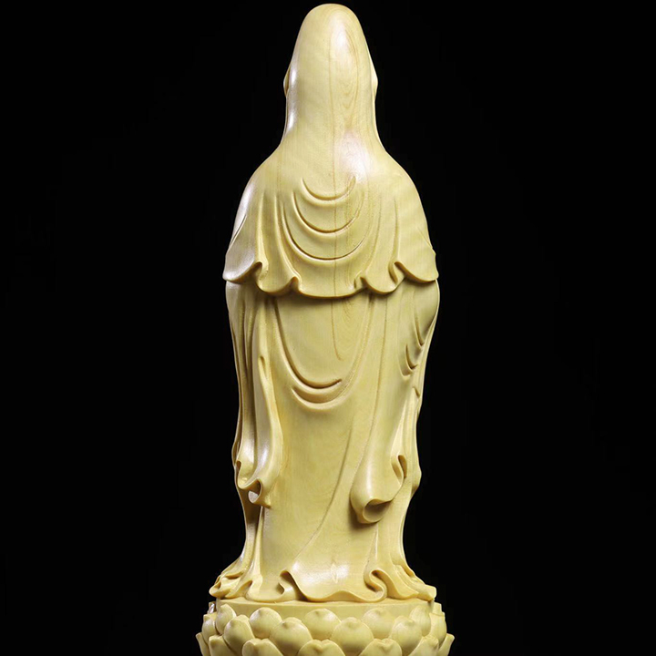 Tượng Phật Bà được chạm khắc vô cùng tỉ mỉ , nổi bật thần thái “ từ bi hỉ xả “ của Phật Bà Quan Âm luôn che chở, cứu giúp chúng sinh. Tượng có