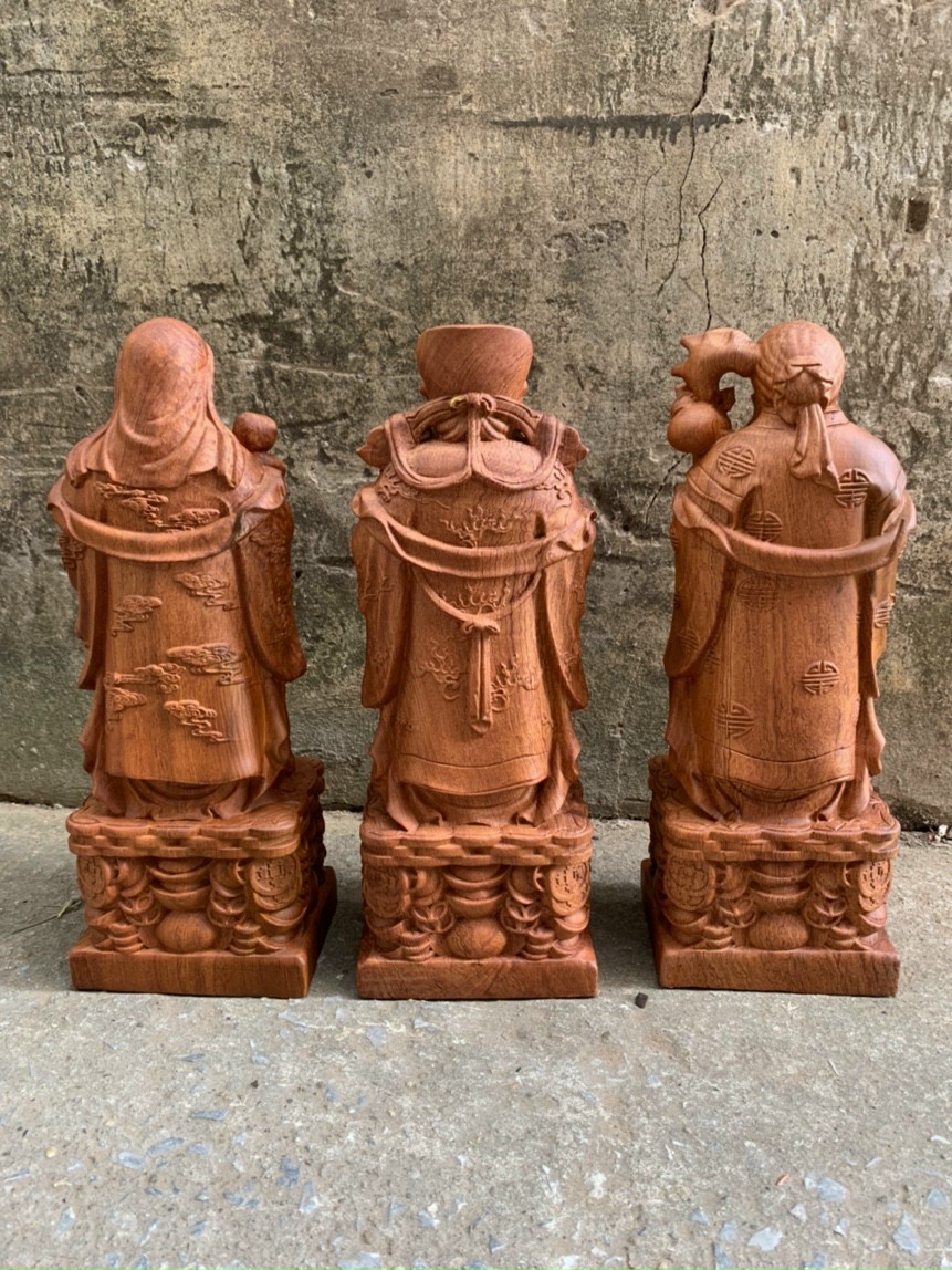 Mua tại Tiktok_ Bộ tượng phật tam đa phúc lộc thọ được làm bằng chất liệu gỗ hương đá tự nhiên 100%