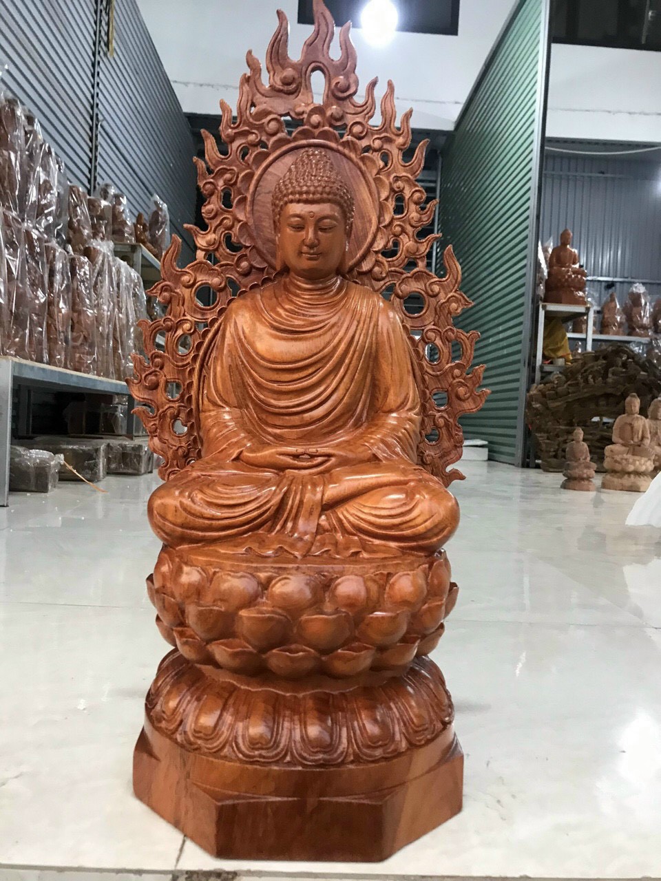 Mua tại Tiktok_ Tượng phật thích ca có lá chắn sau lưng được làm bằng chất liệu gỗ hương đá tự nhiên 100% ,Và được sơn pu phun bóng mờ giữ lại mầu sắc vân gỗ tự nhiên