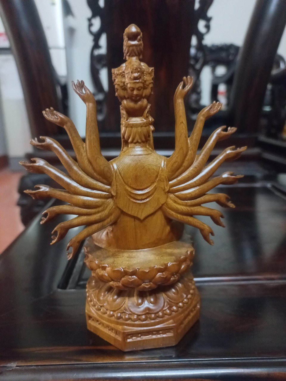 ✨Tượng phật thiên thủ thiên nhãn ngài nghìn mắt nghìn tay bằng gỗ bách xanh thơm nức kt cao 15×11×6cm
