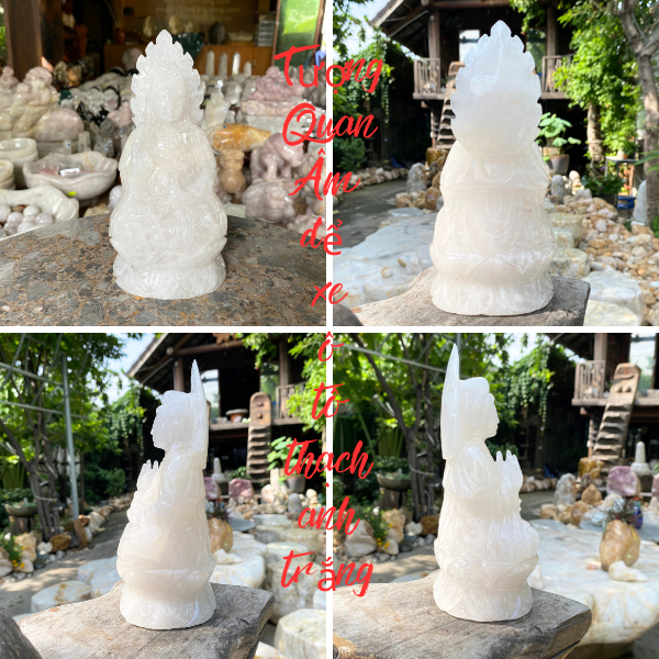 - Vật phẩm sở hữu màu trắng trong của đá thạch anh tạo nên vẻ đẹp thanh thoát và sang trọng cho bức tượng. Tượng Phật Quan Âm để xe ô tô có công dụng gì? Tượng Quan Âm không chỉ là vật trang trí mà còn mang ý nghĩa tâm linh sâu sắc, giúp bảo vệ chủ nhân khỏi tai ương và mang lại sự bình an trong mỗi chuyến đi. Cách bảo quản tượng Phật Quan Âm để xe ô tô luôn mới và đẹp Để giữ cho tượng luôn sáng bóng và đẹp mắt, bạn nên lâu chùi bằng khăn mềm thường xuyên. Tránh để tượng tiếp xúc trực tiếp với ánh nắng mặt trời quá lâu hoặc các hóa chất mạnh. Với thiết kế tinh xảo cùng ý nghĩa phong thủy tốt lành, Tượng Quan Âm để xe ô tô sẽ là món quà tuyệt vời dành cho bản thân hoặc người thân yêu của bạn. Hãy sở hữu ngay để cảm nhận sự an yên và may mắn trong mỗi hành trình!