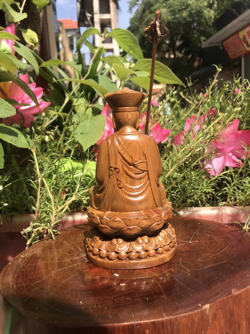 được làm bằng chất liệu gỗ bách xanh liền khối tự nhiên 100% _ Kt cao 15×9×9cm  _ Tượng được chạm khắc gọt tỉa vô cùng ti mi tinh xảo kỳ công .Đi hầu hết