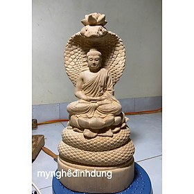 ✨Tượng thần rắn bảo vệ đức Phật bằng gỗ ngọc Am thơm nức cao 40x19x18cm