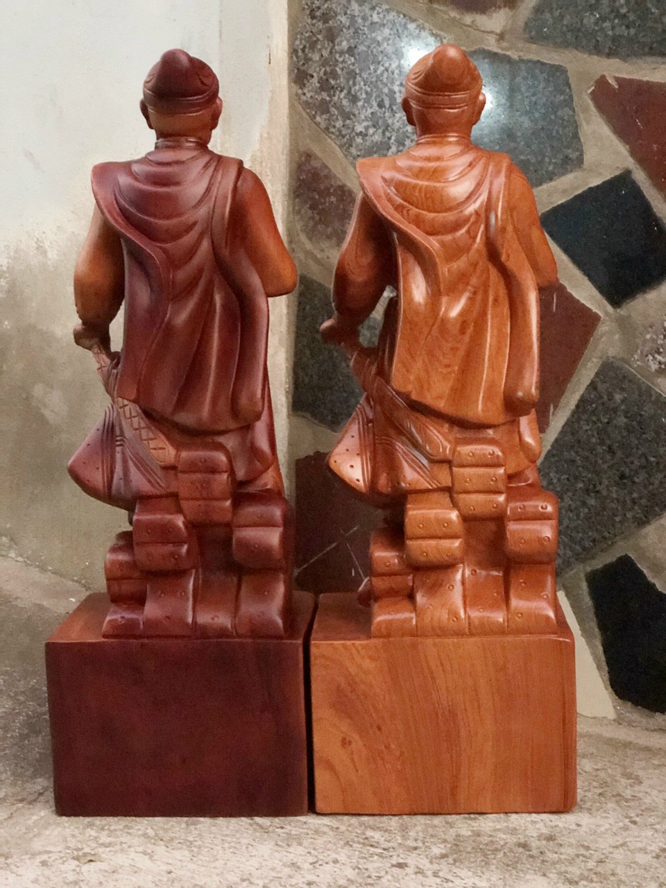 Cặp tượng đạt ma sư tổ và tượng tố công được làm bằng chất liệu gỗ hương đá tự nhiên 100% _ Kích thước 40×12×11cm _ Cặp tượng tố công và đạt ma được làm