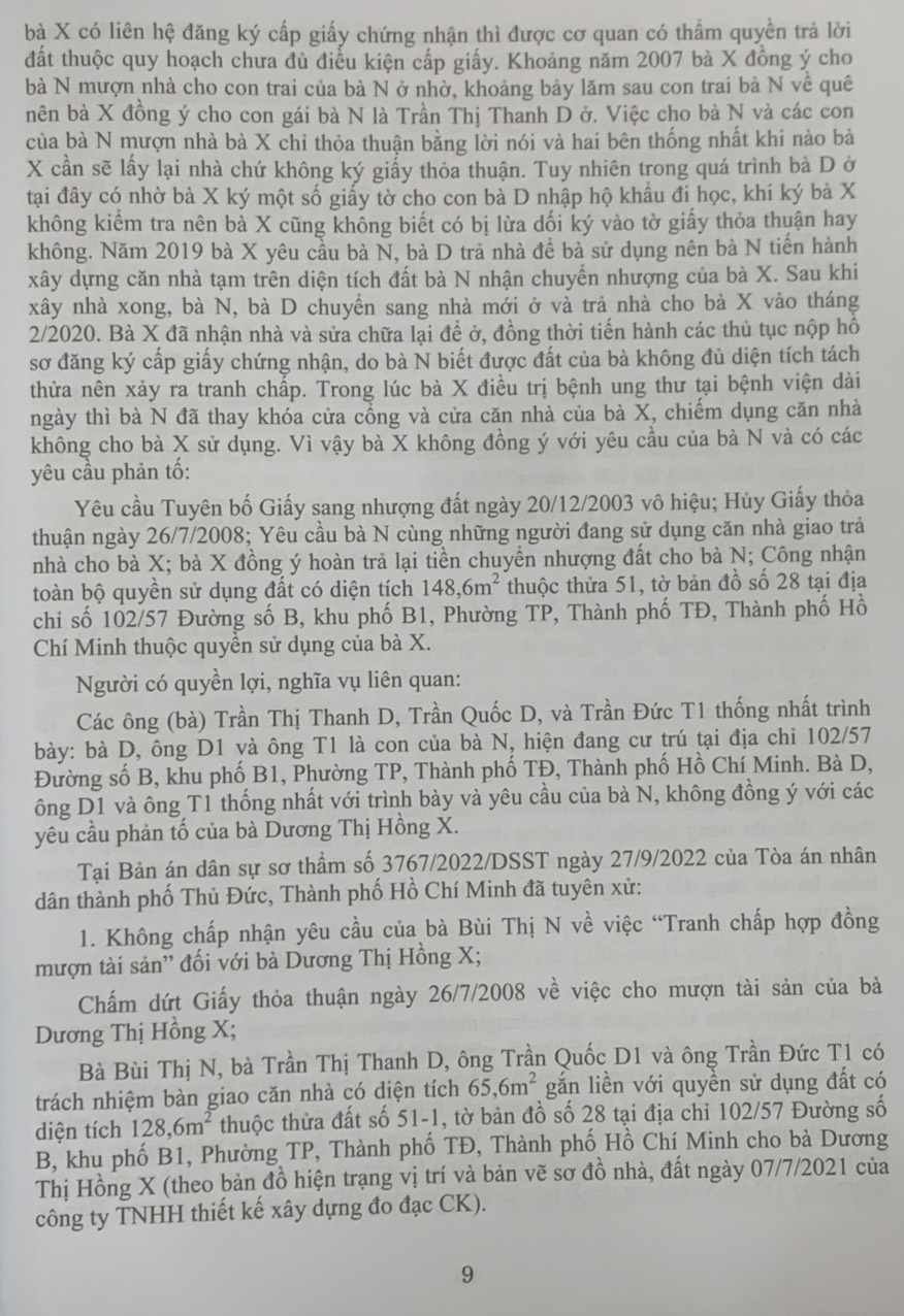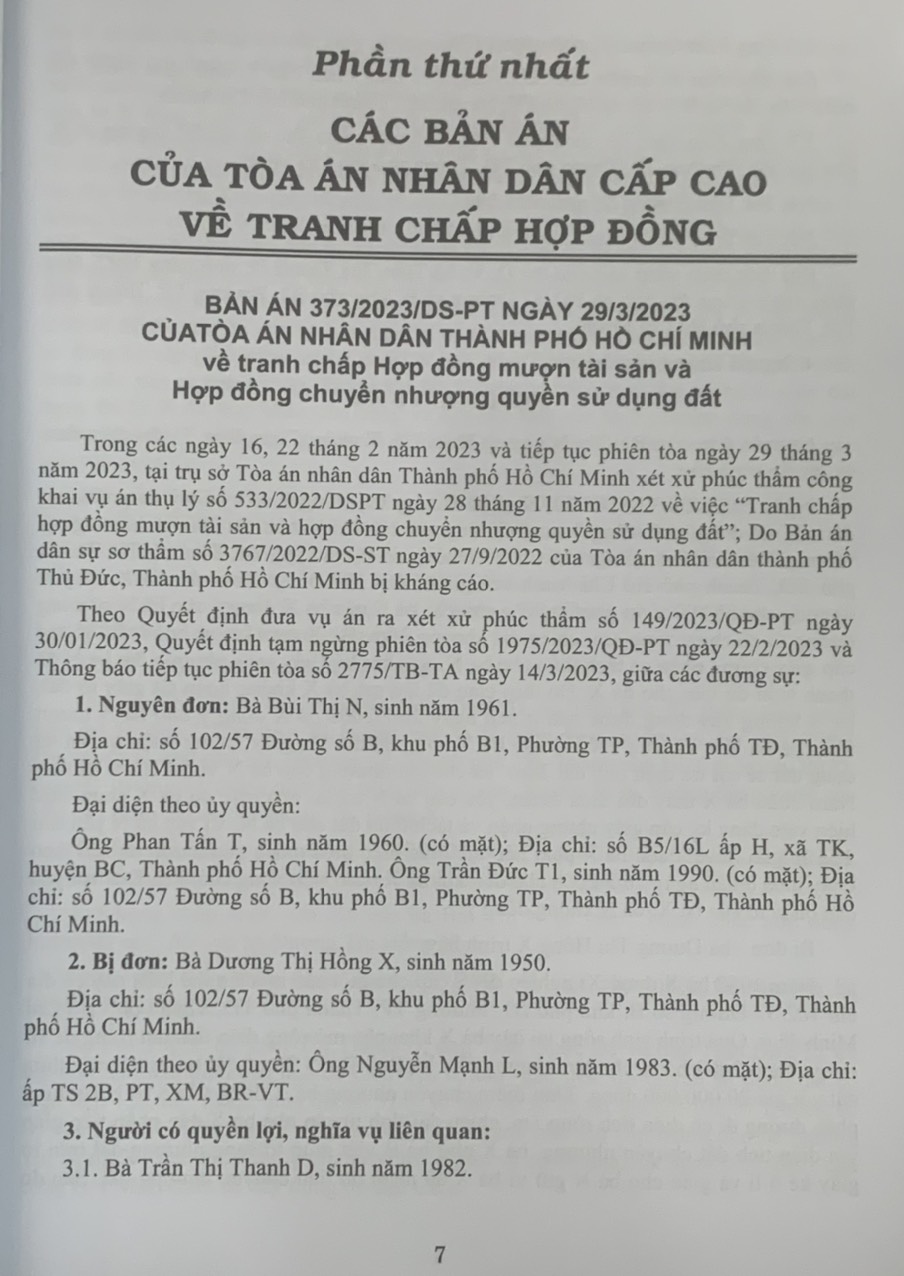 Phần thứ ba. Các Bản án của Tòa án nhân dân cấp cao về quyền sở hữu tài sản Hy vọng rằng đây sẽ là tài liệu hữu ích để bạn đọc, đặc biệt là Thẩm phán, Thẩm tra viên, Hội thẩm, Kiểm sát viên, Luật sư và các học viên tư pháp và những người làm công tác pháp luật nghiên cứu, áp dụng trong thực tiễn xét xử.