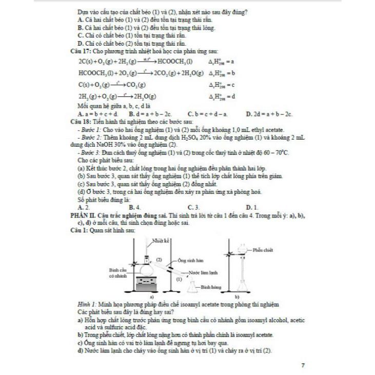 – Phần 1 gồm các câu hỏi ở dạng thức trắc nghiệm nhiều lựa chọn, mỗi câu có 4 phương án chọn 1 đáp án đúng.