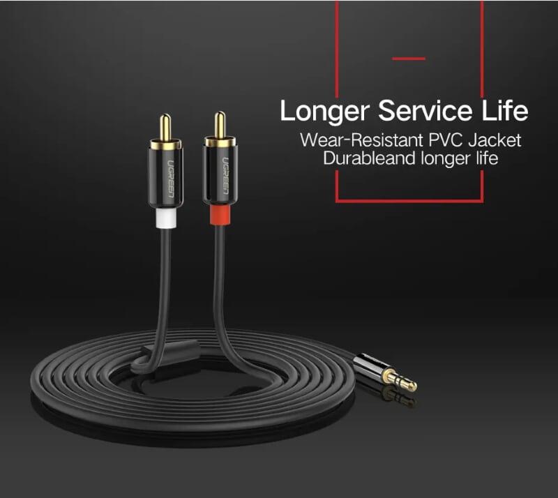 - Cáp Chuyển Đổi Ugreen 3.5mm Sang 2 RCA 10511 (1.5m) được dùng để kết nối từ điện thoại, máy tính, máy nghe nhạc… đến các thiết bị âm thanh có chuẩn RCA (hoa sen)