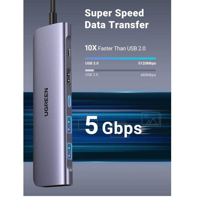 ✨Ugreen UG15214CM195TK to 2 x USB 3.0 + 1 x USB-C 5gbps + 1 x USB-C PD 100W + 1 x HDMI 4k30Hz + 1 x SD + 1 x TF Bộ chuyển đổi USB type C - HÀNG CHÍNH HÃNG