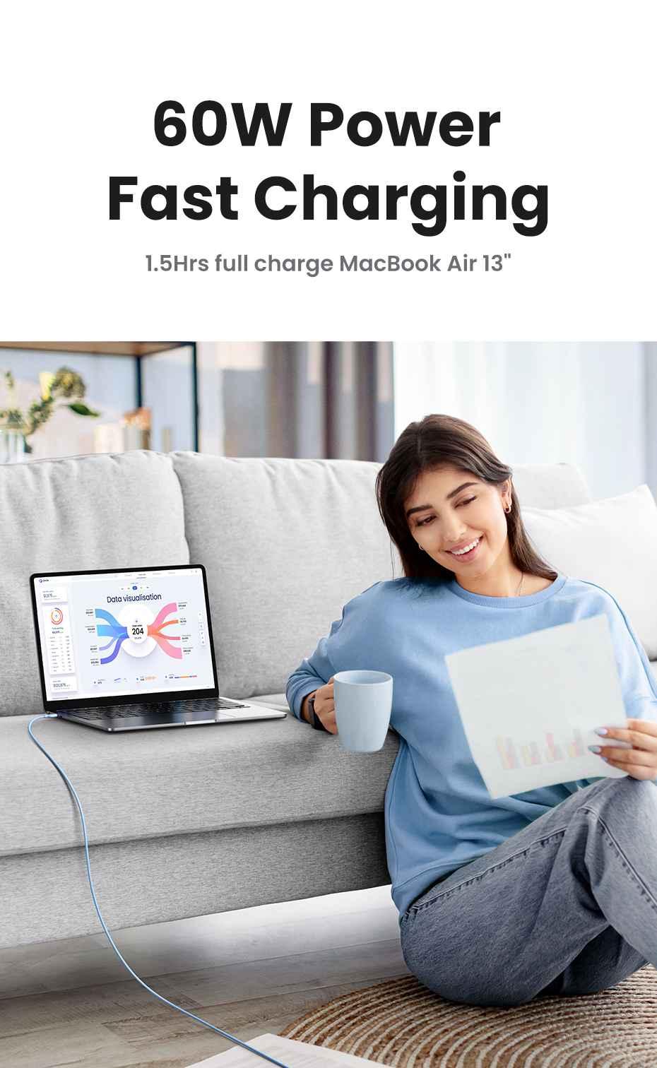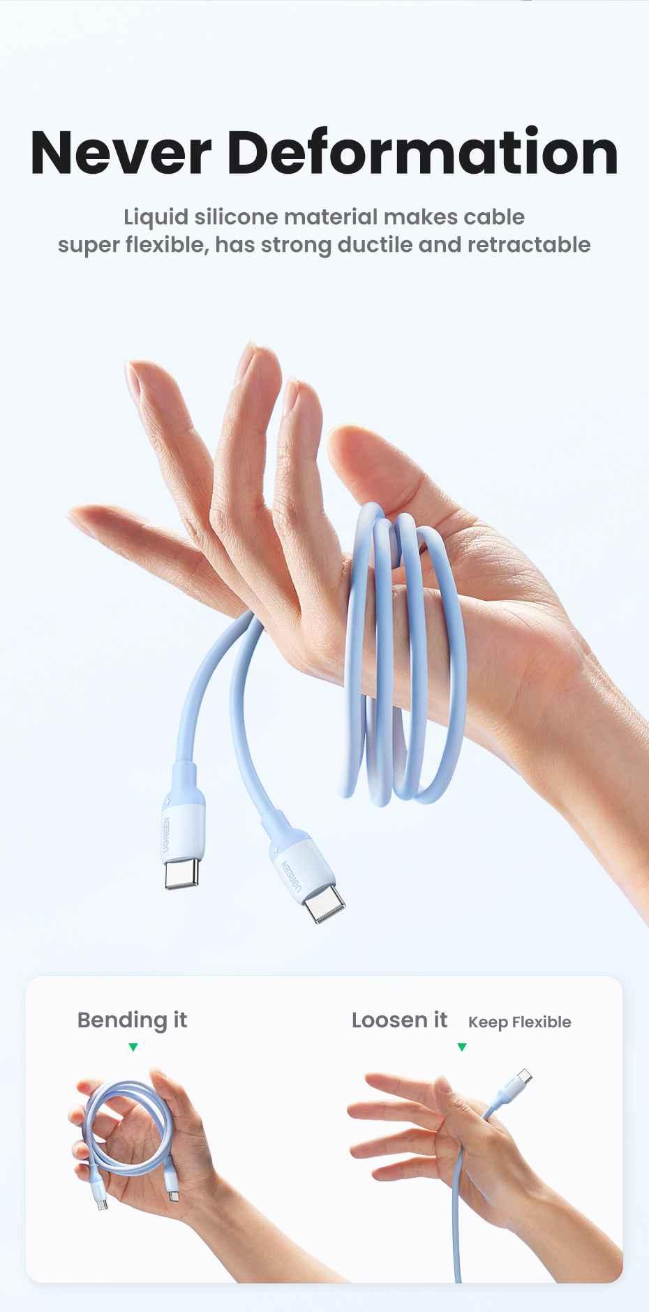 ✨Ugreen UG15281US563TK 60W 2M hỗ trợ QC4.0 3A Cáp sạc nhanh - truyền dữ liệu 2 đầu USB-C c-c dây nhựa Màu Xanh - HÀNG CHÍNH HÃNG