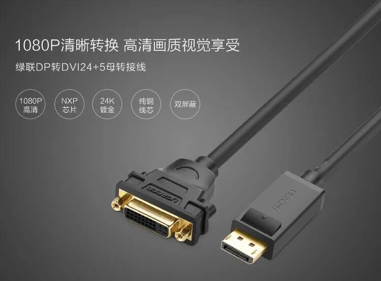 ✨Ugreen UG2040520405TK 15CM màu Đen Cáp chuyển đổi DP sang DVI 24 + 5 Hỗ trợ độ phân giải FULL HD - HÀNG CHÍNH HÃNG