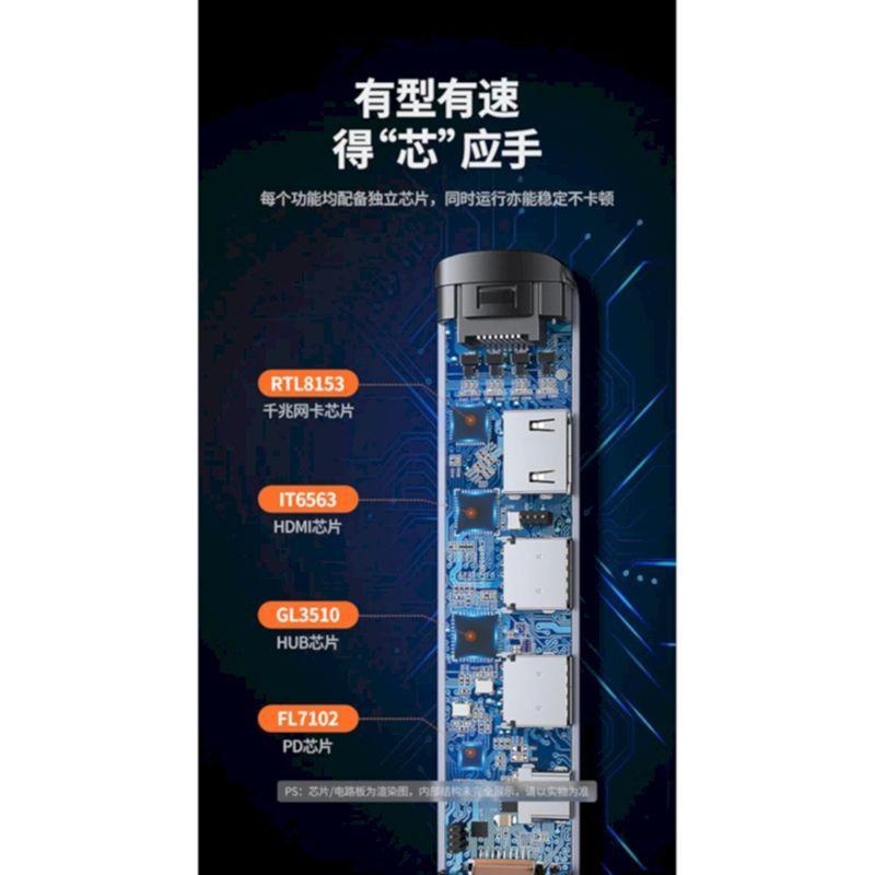 1. Tính năng: Hub mở rộng USB-C sang HDMI, USB, đầu mạng, đọc thẻ 2. Đầu vào: USB Type-C 3. Đầu ra: HDMI 4K@60Hz, RJ45 1Gb ,USB-A 3.0 x2, SD/TF, USB-C 4. Độ phân giải
