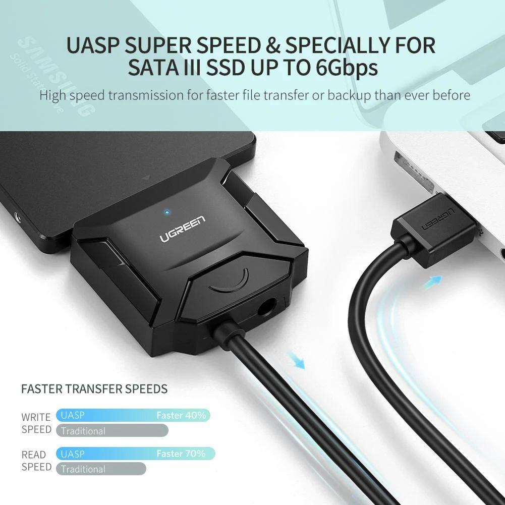 Mua tại TiktokUgreen 20611 cáp usb 3.0 to sata dùng cho hdd ssd 2.5" 3.5 inch có nguồn phụ 1. Color : Black 2. USB 3.0 To Sata 3. Windows 10/98/2000 / XP / Vista / 7/8