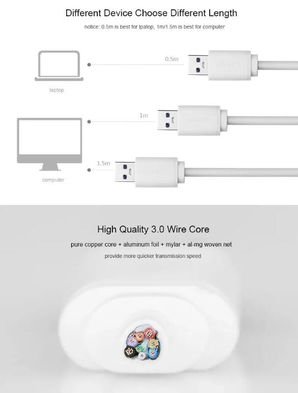 Ugreen 20283 0.8m usb 3.0 hub with powwer port màu trắng 80cm cr113 1. Input: USB-A 2. Output : 4 Port USB 3.0 . có cổng micro nguồn 5V 3. Color : White 4. Length : 1m