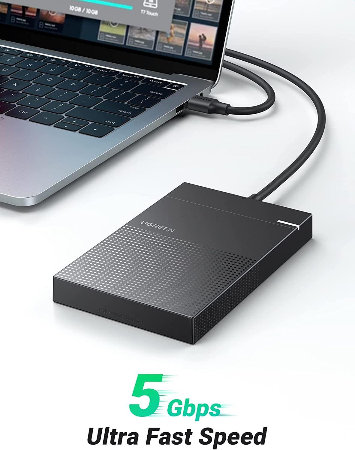Review Hộp đựng Ổ cứng HDD 2.5 USB 3.0 UGREEN 30847 US221,tốc độ 5Gbps, HDD 6TB dây đúc liền 0,5met