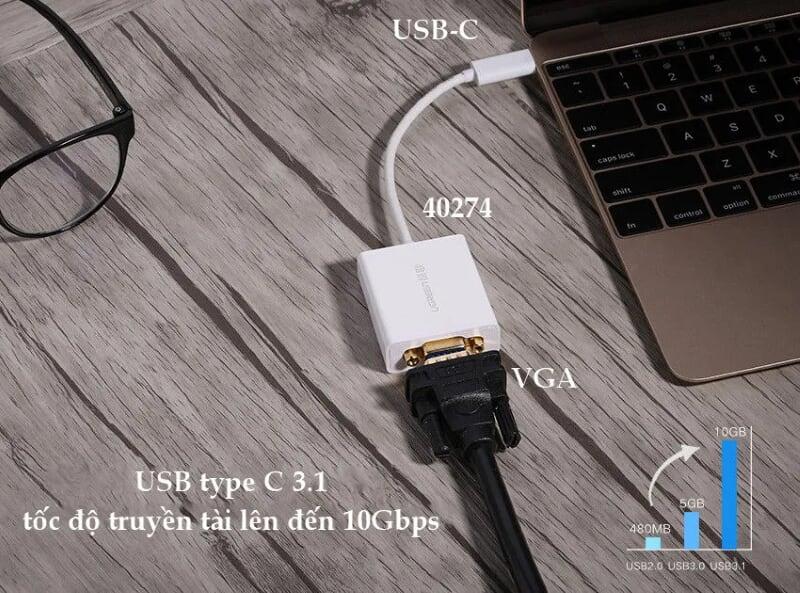 Mua tại TiktokUgreen 40274 15cm usb c to vga adapter trắng 40274