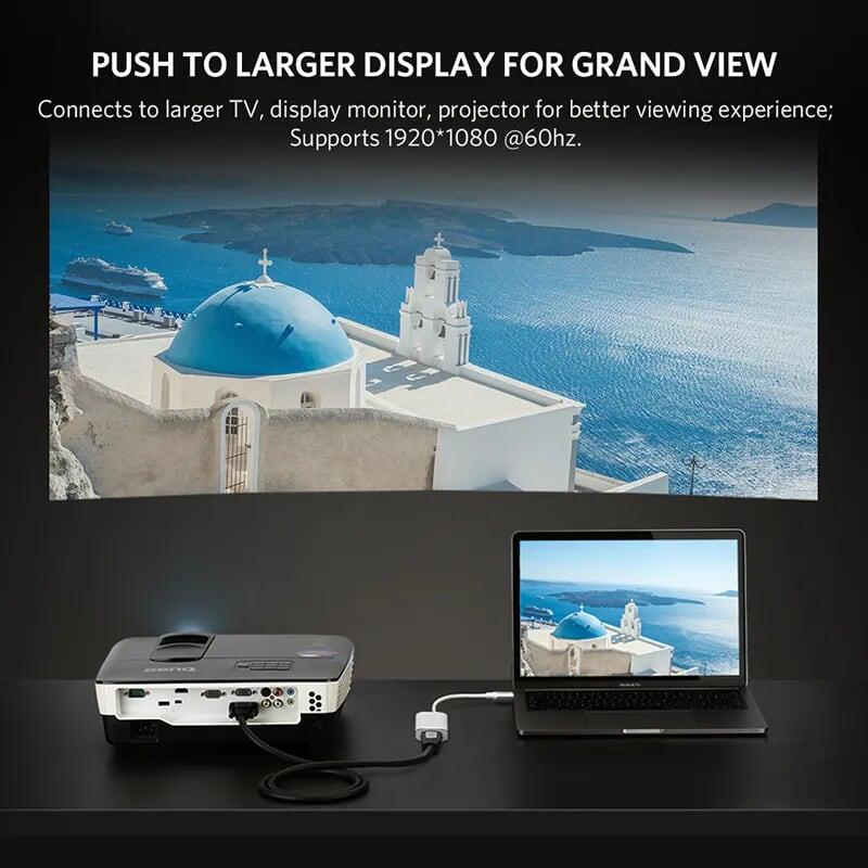 Tổng quan về sản phẩm: 4K @ 60Hz UHD HDMI Full HD VGA Bộ chuyển đổi màn hình này tương thích với các thiết bị USB-C, cung cấp tín hiệu âm thanh / video siêu