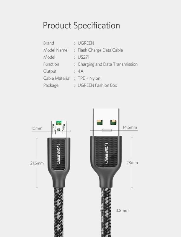 Ugreen 60146 1m micro usb 2.0 data cable aluminum case us290 1. Length : 1M 2. Color : Black 3. USB Version : 2.0 4. Charger + Data Transfer Link Cable USB 2.0 5. 100