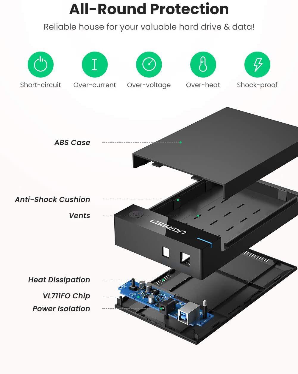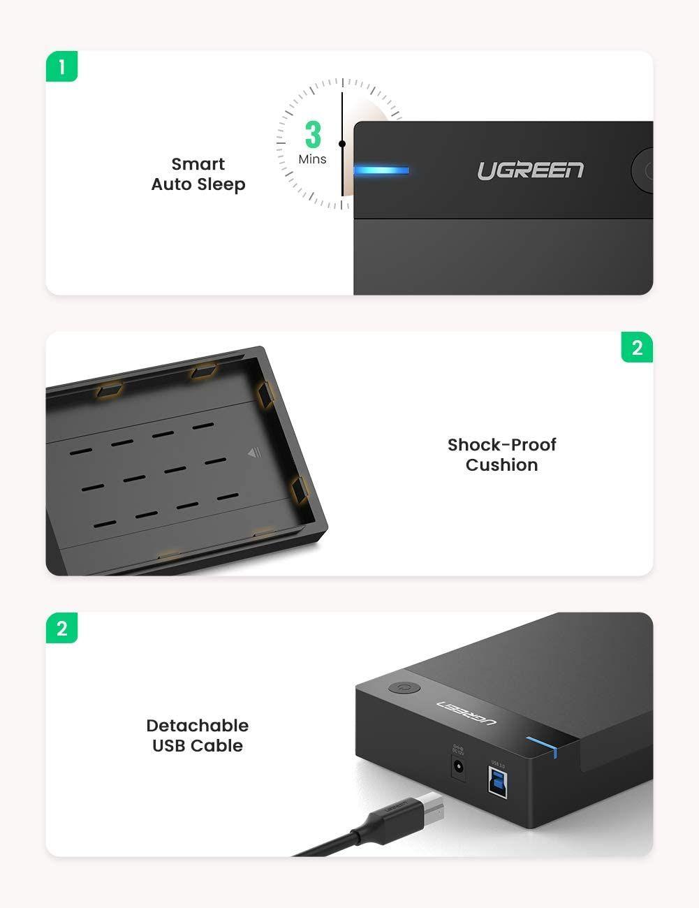 Ugreen 50422 usb 3.0 3.5 inch hard disk box black us222 1. Input:USB3.0-B Female adapter 2. Output:(7+15)Pin SATA port 3. Suppot UASP transport protocol 2. Support SATA 3.0 compatible with SATA 2.0/SATA 1.0 4. Support