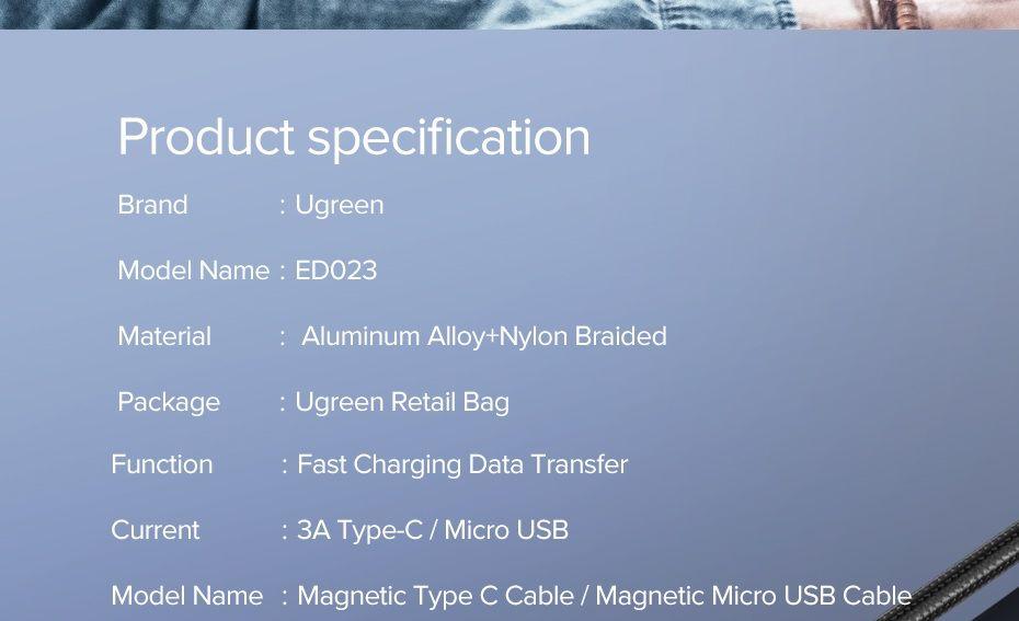 ✨Ugreen UG60207ED023TK 1M cáp USB từ tính cần mua thêm đầu hít 60209 hay 60210 để dùng chung - HÀNG CHÍNH HÃNG