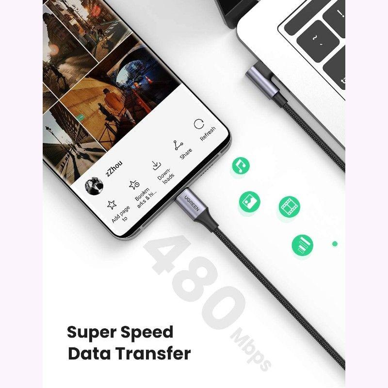 Cáp Sạc, Dữ Liệu USB to Type C bẻ góc 90 độ , Hỗ Trợ Sạc Nhanh 60W