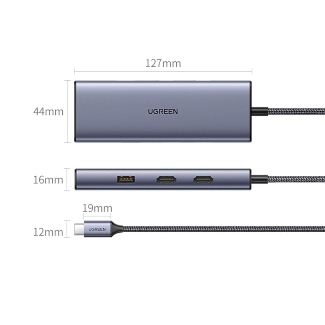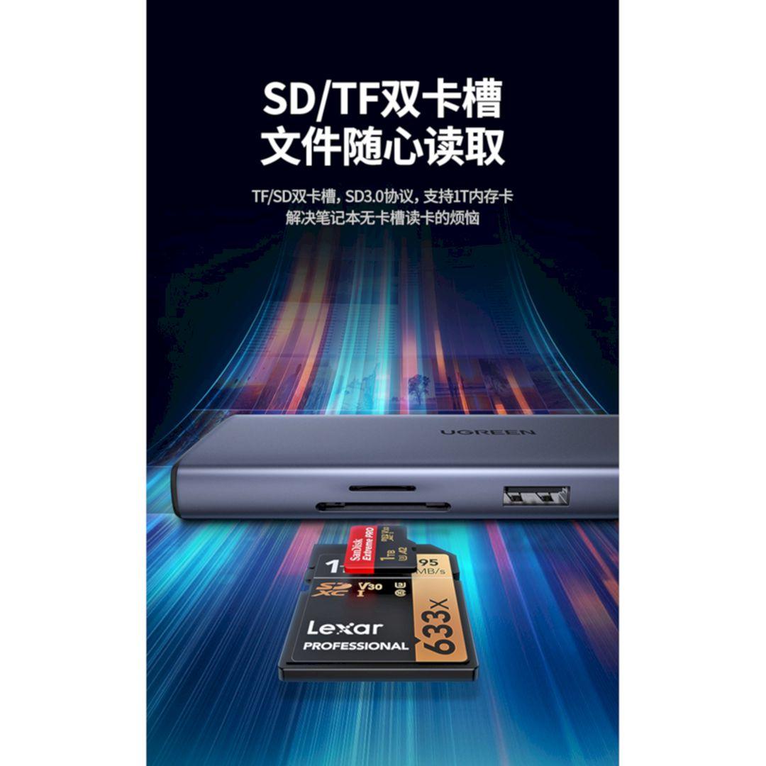 Thiết bị mở rộng 9 in 1 USB Type-C ra 2 cổng HDMI/USB/LAN Gigabit/PD 60W/SD/ TF Ugreen 90119 cao cấp
