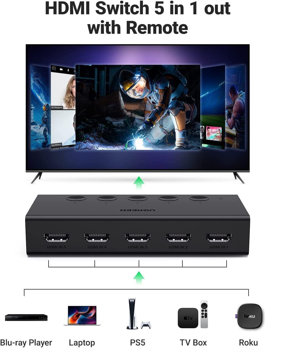 Bộ gộp HDMI 2.0 5 in 1 out Hỗ trợ 4K@60Hz HDR Ugreen 50710 Chính hãng