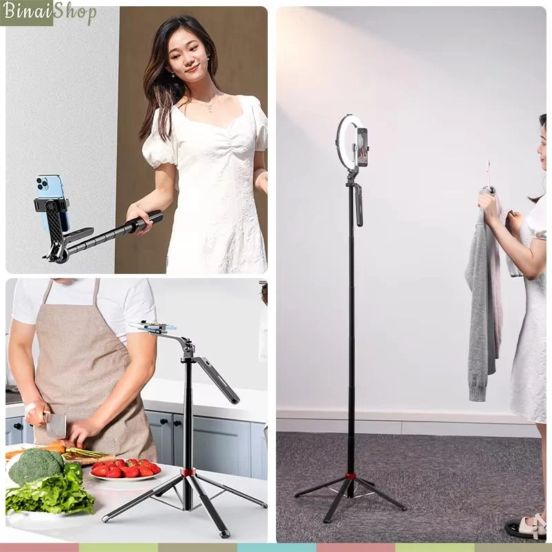 - Thiết kế nhỏ gọn, có thể gập lại, dễ dàng mang theo khi di chuyển thích hợp cho phát trực tiếp, quay phim, chụp hình selfie, chụp ảnh nhóm,...