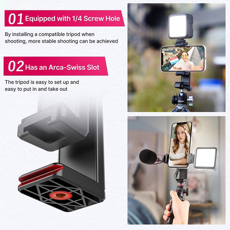 ✨Ulanzi ST-22 - Kẹp Điện Thoại Gắn Tripod, Xoay 360°, Lật Sau 180°, Hỗ Trợ 2 Ngàm Mở Rộng - Hàng Chính Hãng