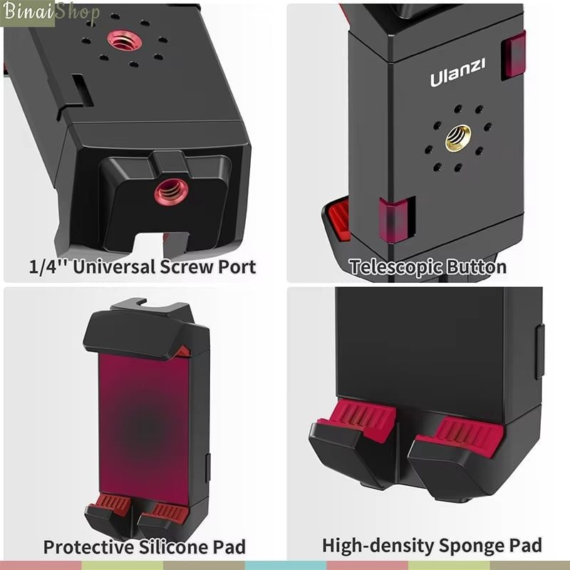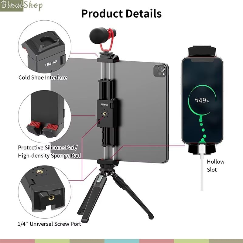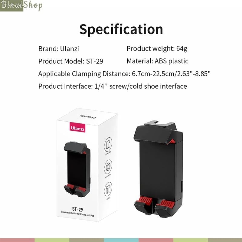 Ulanzi ST-29 – Kẹp Điện Thoại, Máy Tính Bảng Xoay Linh Hoạt, Tích Hợp Cold Shoe Và 2 Ngàm Phụ Kiện