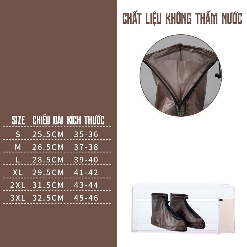 Mua tại TiktokỦng Bọc Giày Đi Mưa Chống Nước Có Đế Chống Trơn Trượt Cao Cấp ️Size M: giày 36-37 ️ Size L: giày 38-39 ️ Size XL: giày 40-41 ️ Size XXL: giày 42-43 Size XXXL: giày 44 - 45 Những cơn mưa bất chợt không báo trước luôn là nỗi lo đối với mỗi người khi mà áo mưa không thể che hết được toàn cơ thể, vẫn còn đôi chân của bạn trơ giữa cơn mưa, nhất là khi đi xe máy hoặc đi bộ giữa đường lầm bẩn. Cần một thứ gì đó để giải quyết vấn đề khó xử này. Ủng đi mưa cao cấp là giải pháp giúp bạn xóa bỏ đi nỗi lo đôi chân, đôi giày của bạn bị ướt sũng vì trời mưa.