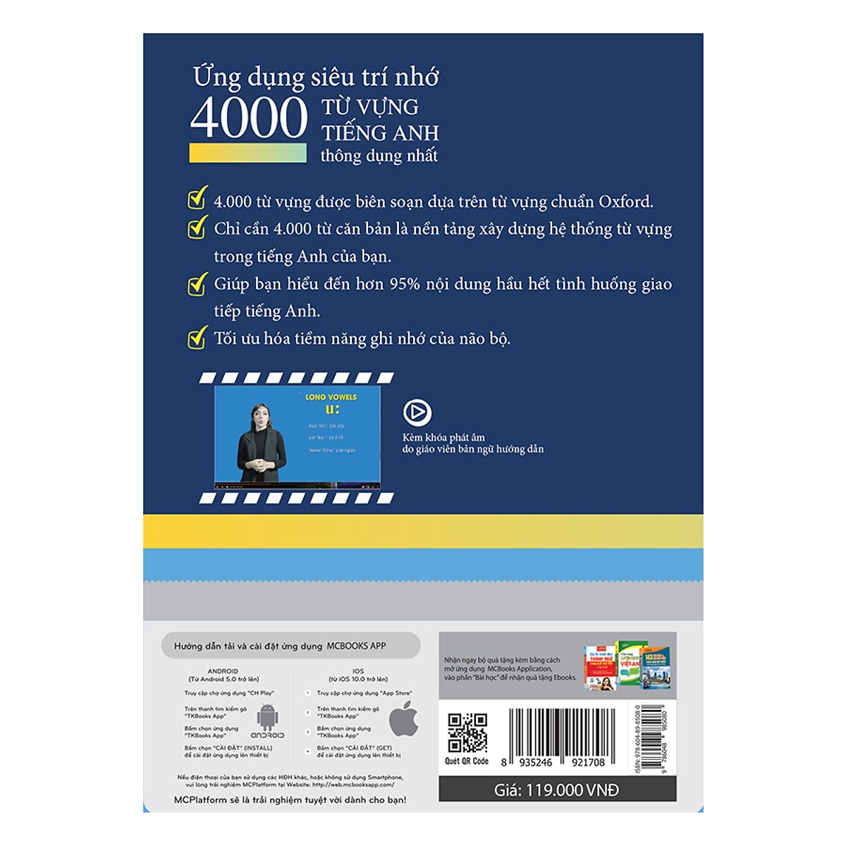Cuốn sách “Ứng dụng siêu trí nhớ 4000 từ vựng tiếng Anh thông dụng nhất” được biên soạn với mục tiêu giúp bạn học từ vựng tiếng Anh hiệu quả nhất cho những người muốn tăng cường khả năng ghi nhớ tối ưu tiềm năng của não bộ, sau đó sử dụng đúng và nhạy bén những gì mình nhớ để áp dụng vào giao tiếp thực tế. Về mặt nội dung, cuốn sách tập trung vào 4000 từ vựng thông dụng nhất được sử dụng nhiều nhất trong giao tiếp cuộc sống hằng ngày, các bài thi, mặt khác trau dồi thêm cho các bạn học viên có thêm các kỹ thuật để ghi nhớ từ vựng một cách tối ưu nhất.