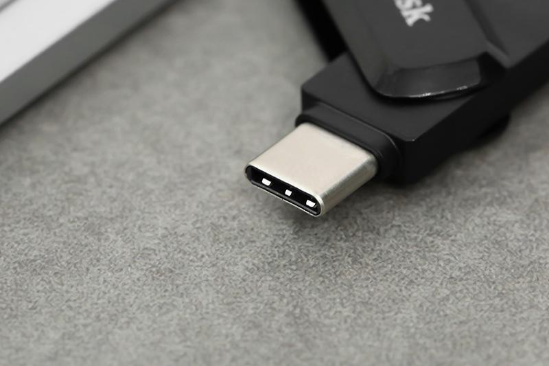 Kiểu dáng tinh xảo, nhỏ nhắn, nắp xoay bảo vệ các đầu kết nối tốt hơn Thiết kế Sandisk SDDDC3 gọn đẹp, màu đen thời trang, dễ dàng cầm nắm, tiện nhét vào túi quần