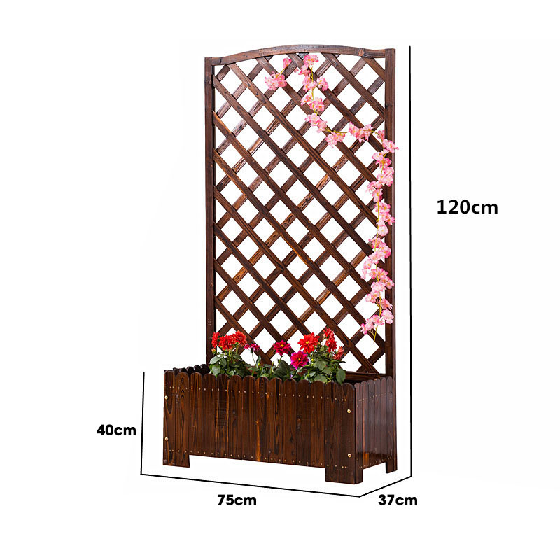 Kệ gỗ vách ngăn sân vườn kèm chậu trồng hoa cây cảnh decor vintage gỗ thông tự nhiên có bảo hành Kệ gỗ vách ngăn decor sân vườn, quán cafe, trường học, homstay vô cùng
