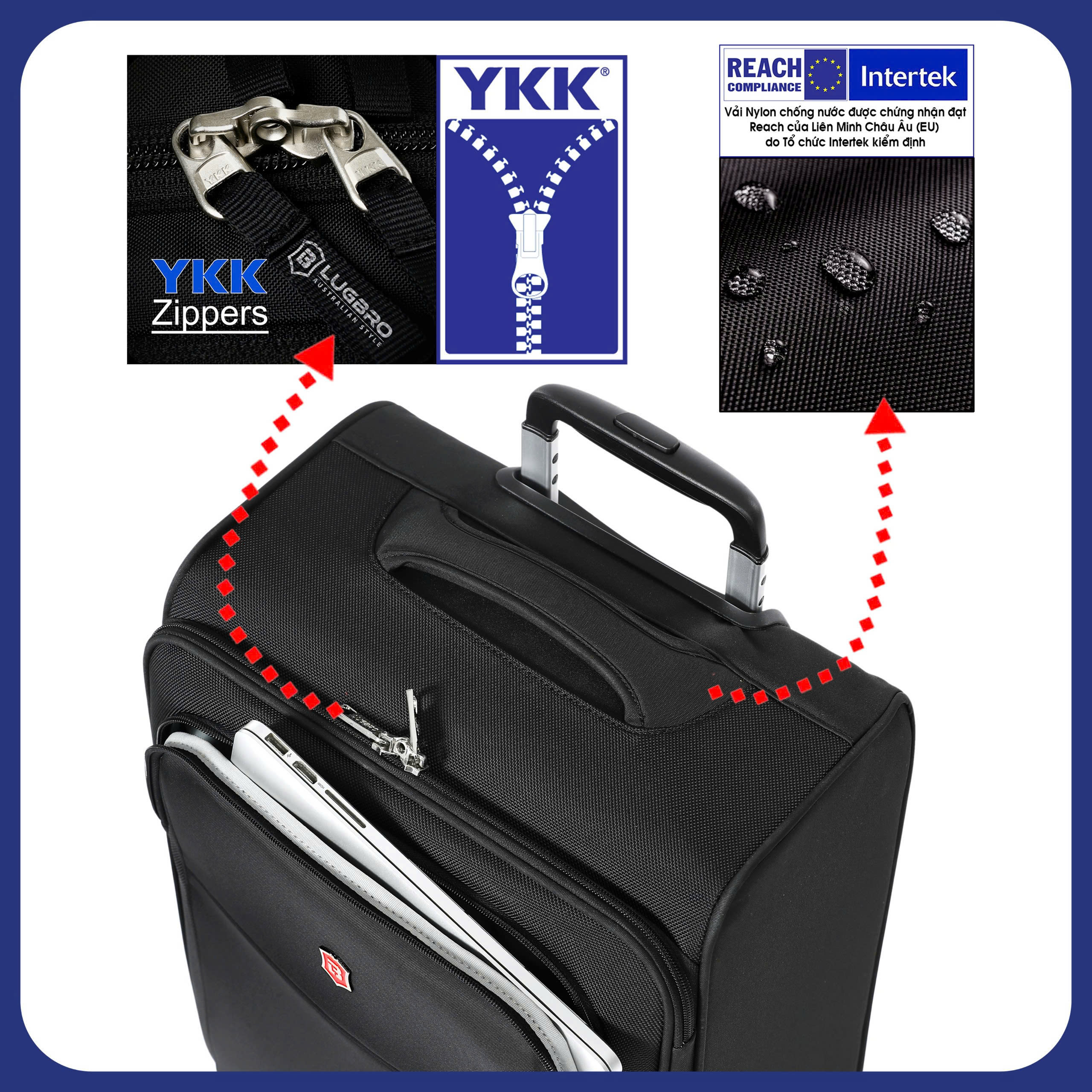 - Dây kéo bền bỉ giúp hạn chế rủi ro trong quá trình kí gửi vali