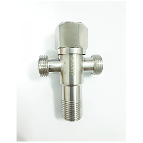 Van khóa chữ T chia hai đường nước 1 ngã cấp nước vào bồn cầu dây xịt vệ sinh, 1 ngã dùm để giảm áp lực nước Thân van được làm bằng đồng mạ chrome,