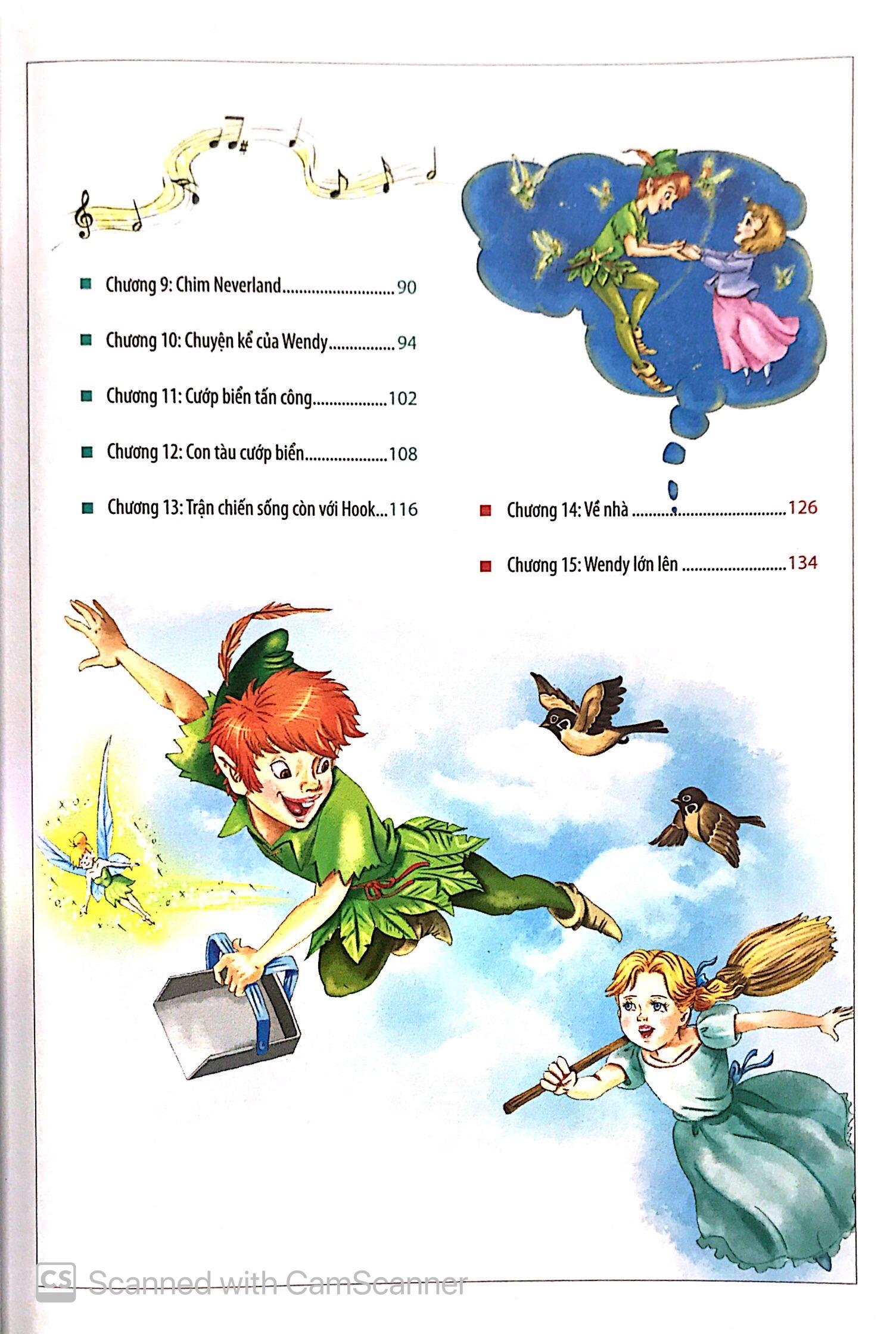 Mua tại TiktokPeter Pan được biết đến là đứa trẻ không bao giờ lớn. Anh chàng dạy 3 đứa trẻ là Wendy, John và Micheal học bay. Nhân lúc bố mẹ không có nhà, chúng đã bay đến xứ sở Neverland bí ẩn. Trên đảo có các nàng tiên nhỏ, đám cướp biển và các nàng tiên cá mà các em nhỏ đã quen thuộc trong truyện cổ tích. Trong câu chuyện, Peter và các bạn nhỏ được cùng nhau vui chơi và trải qua những chuyến du lịch mạo hiểm nhưng không kém phần thú vị. Thông qua hình tượng nhân vật Peter Pan, độc giả sẽ nhận ra rằng: tuổi thơ ấu là một áng văn chương tươi đẹp nhất, mơ mộng nhất trong một cuốn sách lớn của đời người. Mỗi bạn nhỏ, hãy tự viết cho mình một cuốn sách cuộc đời và tận hưởng những niềm vui thuộc về bản thân.