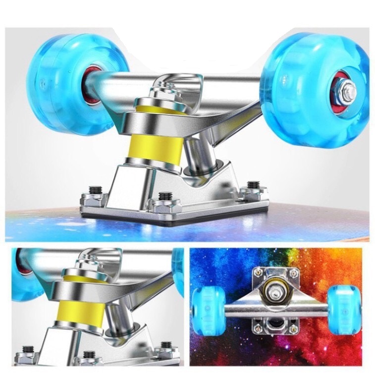 Ván trượt Người Lớn Skateboard Mặt Nhám, Bánh Pu + Khung Hợp Kim Nhôm Chịu Lực(Nhiều Màu sắc) Kích thước ván trượt (D*R*C): 80*20*10cm Chất liệu: Gỗ phong ép 7 lớp, dày dặn độ bền