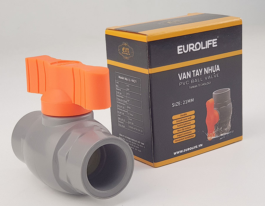 Van uPVC thân đúc bi nhưa ABS 21, 27, 34, 42, 49, 60mm Eurolife EL-VN (tay cam)Thương hiệu EurolifeCác size phổ biến từ 21mm, 27, 34, 42, 49, 60mmTiêu chuẩn : ANSI ( American National Standar...