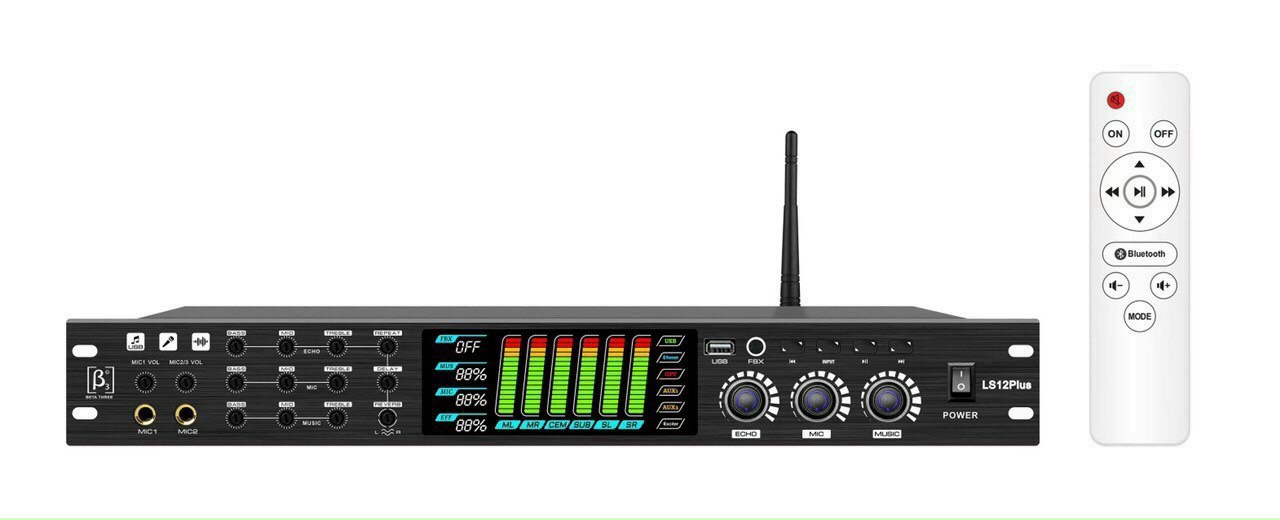 - Chức năng Bluetooth , chống hú , Reverb , cổng quang , 5.1 , tích hợp eq Màn hình Lcd màu hiển thị đèn nước
