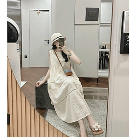 ✨Váy Bầu Sát Nách Mùa Hè Azuno V84 Chất Liệu Cotton Ren May 2 Lớp Cao Cấp