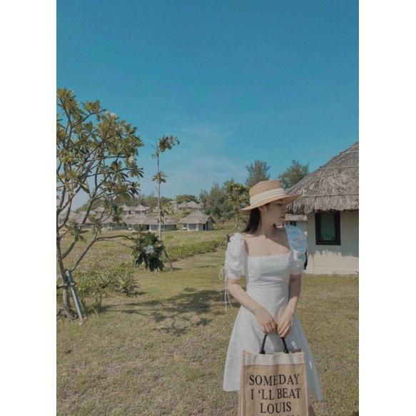 ✨Váy đầm xòe công chúa màu trắng dự tiệc cổ vuông tay phồng dây rút xinh xắn bigsize mẫu mới giá rẻ đẹp hót hít