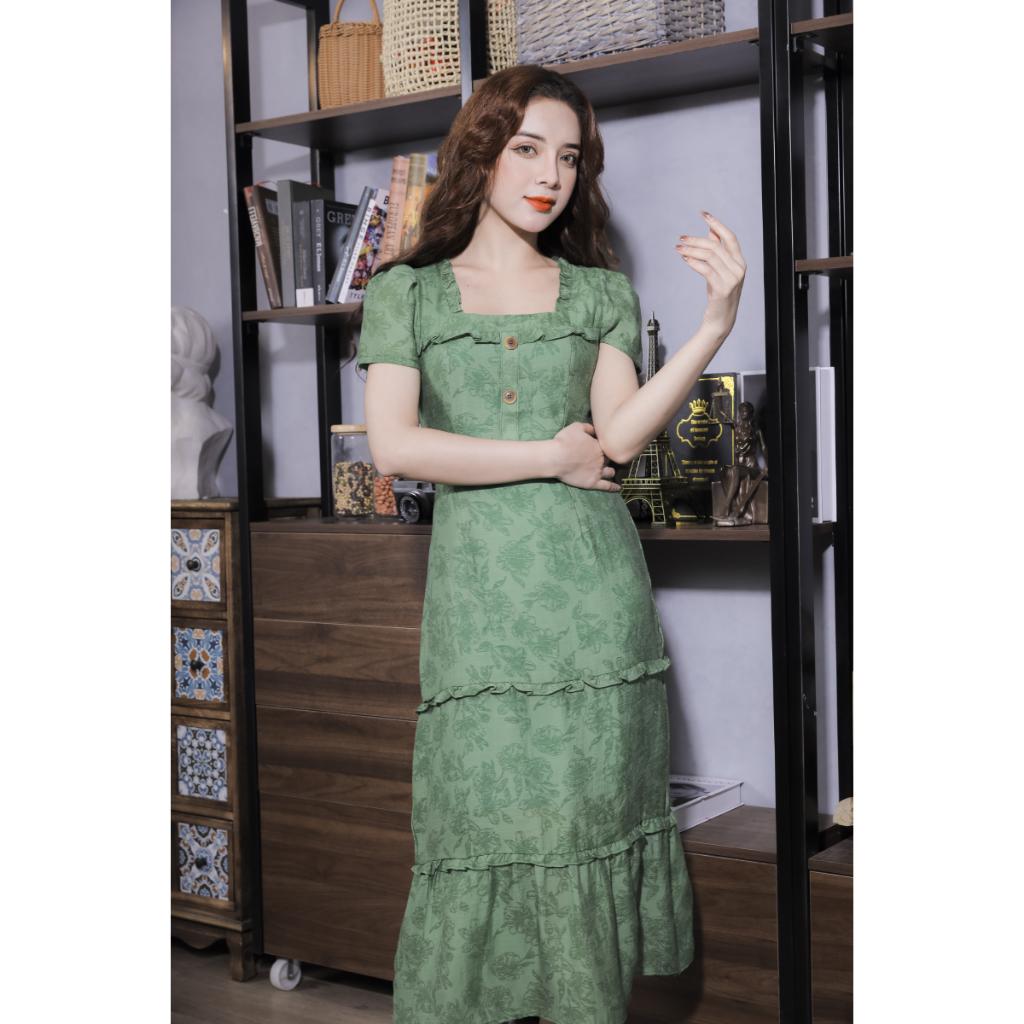 ✨Váy Nữ Cao Cấp Màu Xanh Xếp Ly 23V028 Pi Style