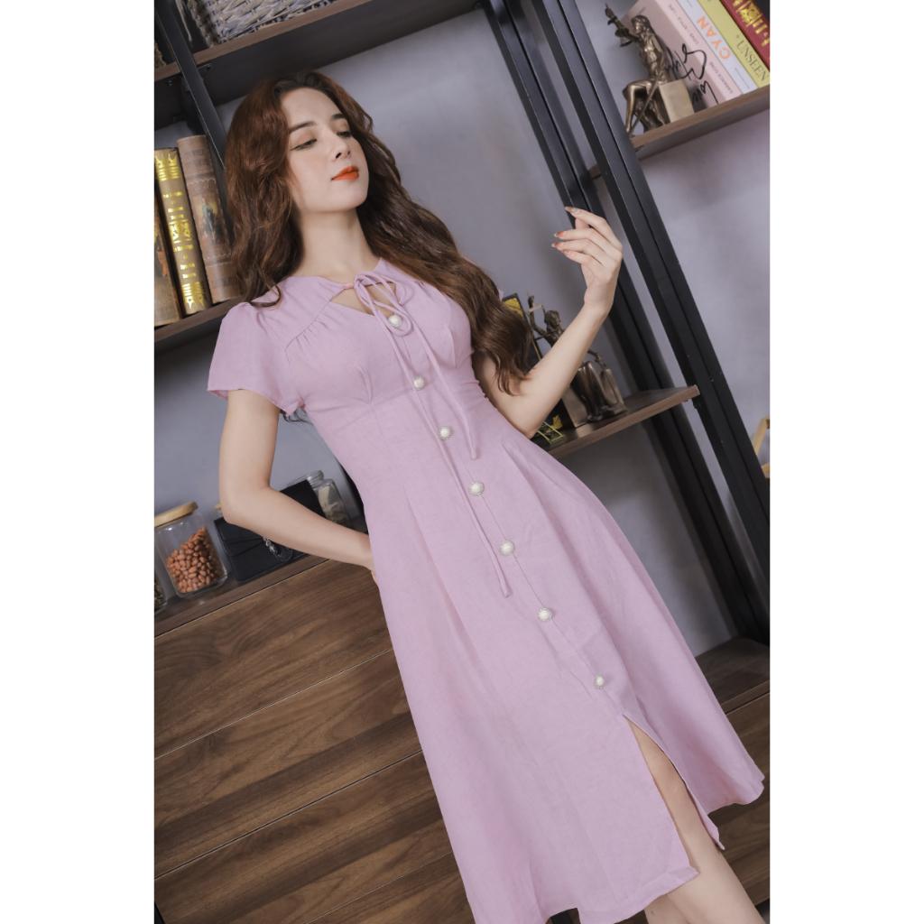 ✨Váy Nữ Vải Xước Màu Tím Cao Cấp 23V045 Pi Style