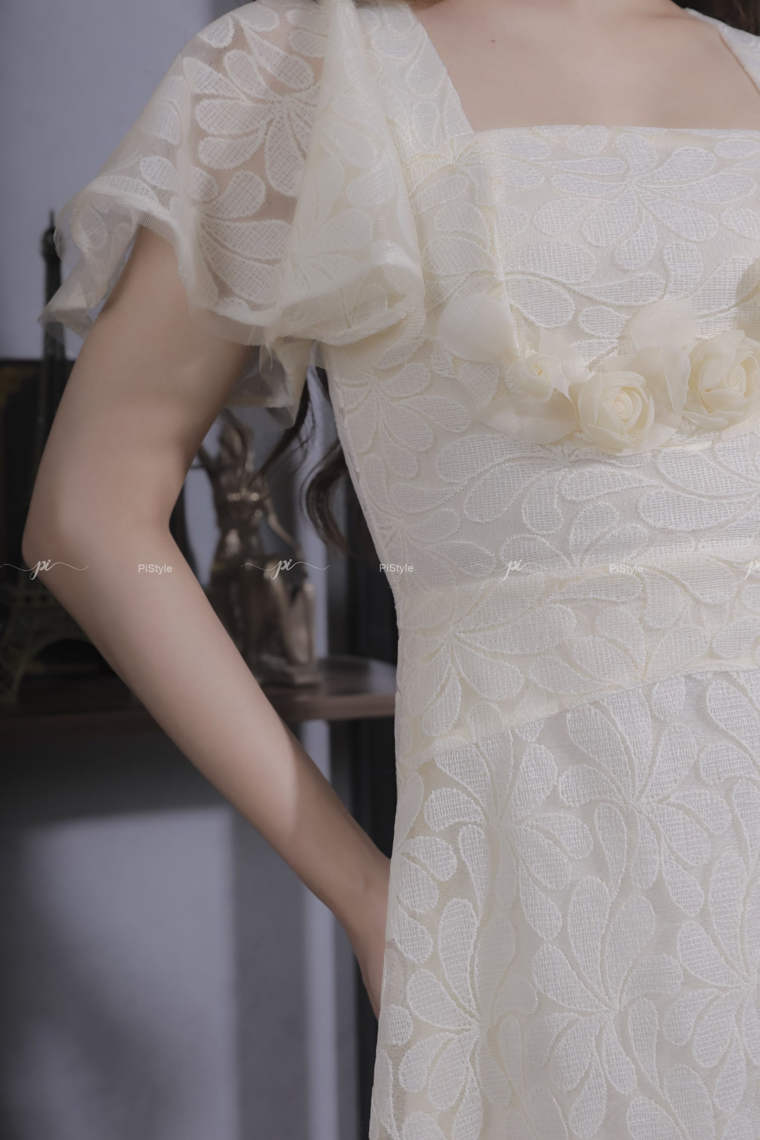 ✨Váy Ren Màu Kem Hoa Ngực 23V002 Cao Cấp Pi Style