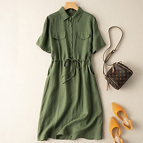 Đầm Sơ Mi Cotton, chất liệu cotton mềm mại, mỏng nhẹ. Phần trước ngực đính hạt tạo hình lá độc đáo. Có túi 2 bên hông, Mặc phối với quần short hoặc legging bên trong.