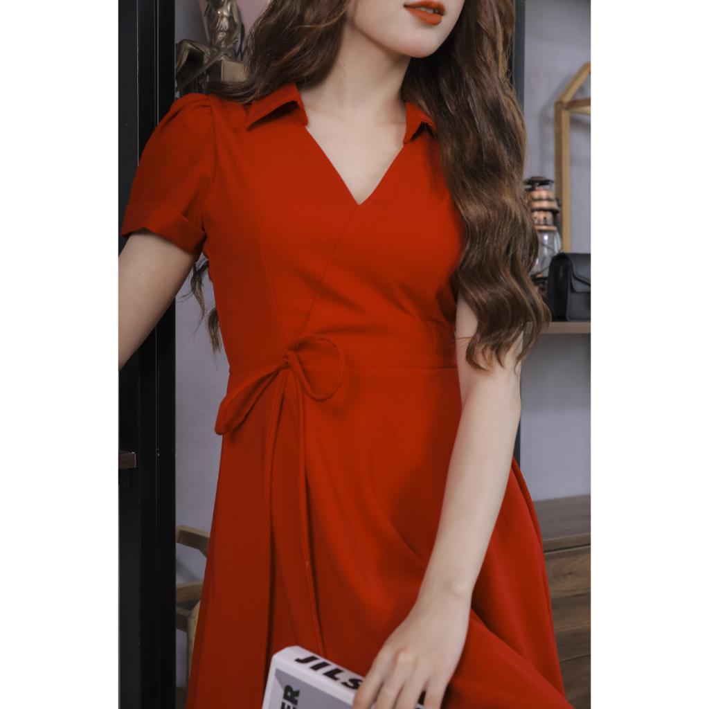 ✨Váy Trơn Màu Đỏ Nơ Eo Cao Cấp 23V046 Pi Style