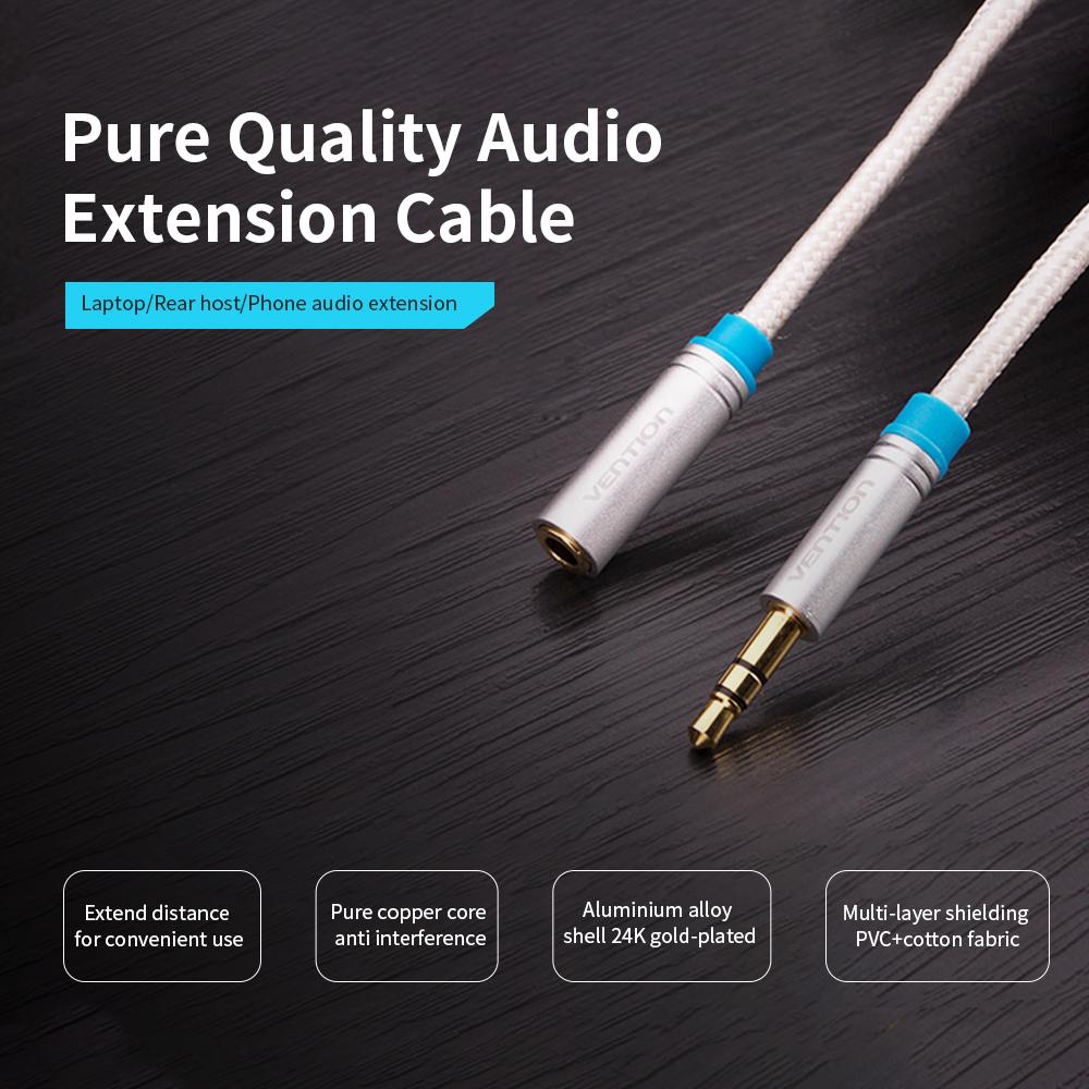 VENTION 3.5mm Audio Extension Cable extends audio ports of PC host, laptop, phone, MP3 and iPad to connect with speaker and earphone. Features: Cotton net weaving. It is solid and durable. You can stretch for