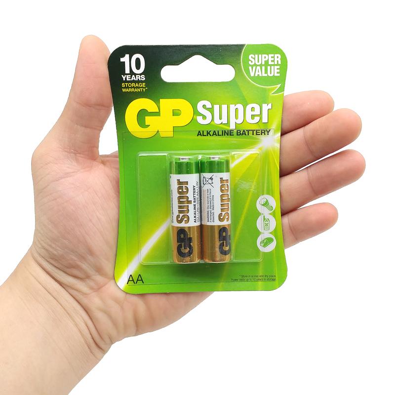 Mua tại TiktokVỉ 2 Pin Tiểu GP Super Alkaline Battery AA 1.5 V - GP15A-2U2 Pin AA GP Alkaline là dòng pin kiềm. Pin GP có dòng điện ổn định, khả năng phục hồi dòng nhanh, độ bền của pin vượt trội so với pin cacbon. Rất phù hợp với các thiết bị tiêu tốn điện năng lớn, dòng điện ổn định như cửa từ, máy ảnh, máy quay phim, mic hát karaoke, thiết bị điều khiển từ xa,… GP được đóng vỉ 2 viên trong bao bì giấy chắc chắn. Pin có hạn sử dụng 10 năm, không bị chảy nước trong quá trình sử dụng.