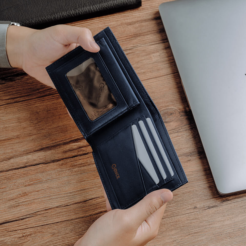 Ví da nam Gence dáng dọc da bò Nappa màu đen C15 - C17 Màu Xanh #vi #vida #vidanam #vinho #videtui