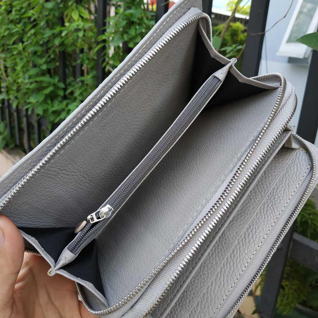 Ví dài cầm tay nam nữ da cao cấp, Clutch 1 khoá đựng vừa ipad, Màu Ghi sang trọng, bảo hành 6 tháng